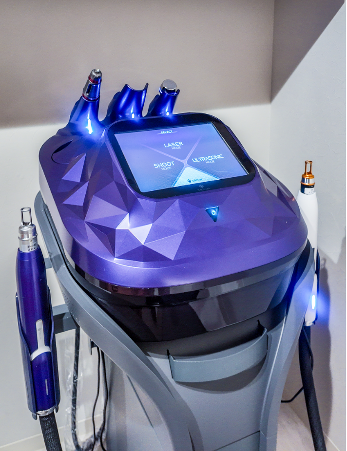 最新のTRIUMマシンによるレーザー照射や、Airジェット・超音波モードでの美容成分導入を行います。