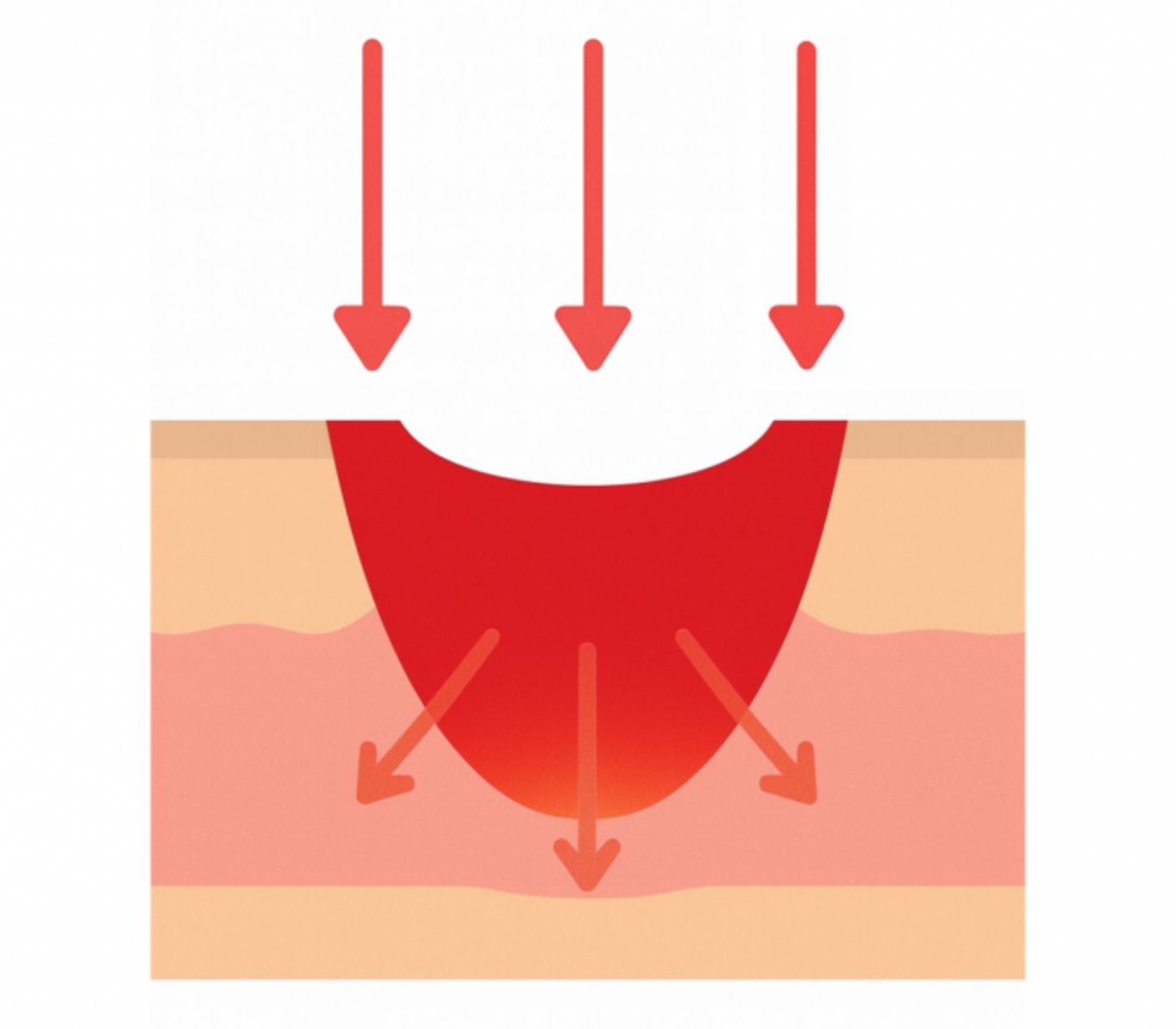0.1~1mmの深さまで真皮層に作用し、新たな皮膚組織の生成を促進します。